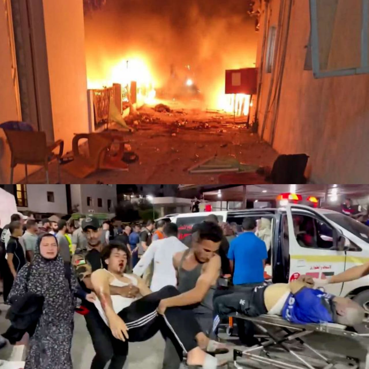 A spokesman for the Ministry of Health in Gaza said that at least 500 people were martyred or wounded in an Israeli air strike on the National Arab Hospital known as “Al-Baptist” in the Gaza Strip, while Palestine State TV reported hundreds of martyrs and wounded in the bombing.
